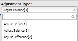 - Press the dropdown button. The Adjustment Type pick list screen will appear. Select by double clicking the desired option.