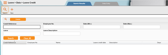 - To locate a specific Leave credit: – Enter value(s) for the field(s). The user can select an employee’s record from the List screen.
