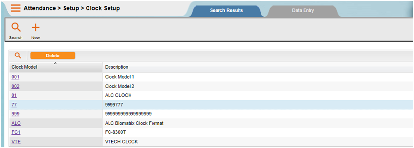 2. Use the List screen to locate the Clock Model Record. Click the ‘OK’ button.
