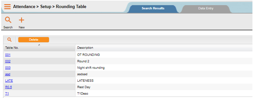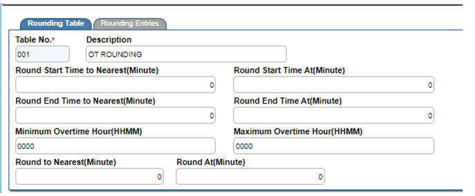 Rounding table is used to round the computed overtime, late-in, early-out and time-off hours. You can set unlimited rounding tables in the system.