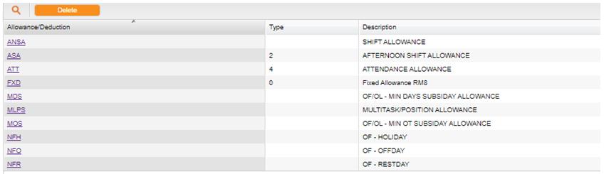 - Enter the type of the allowance/deduction. The type defined is for report grouping purposes.