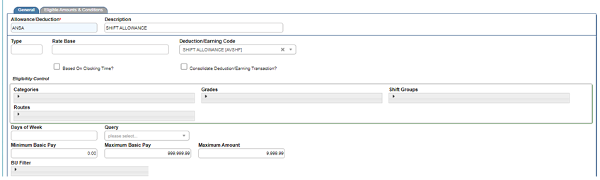 - Select the eligibility of the allowance/deduction based on shift groups, by clicking on the dropdown button. Leave as empty if it applies for all shift groups.