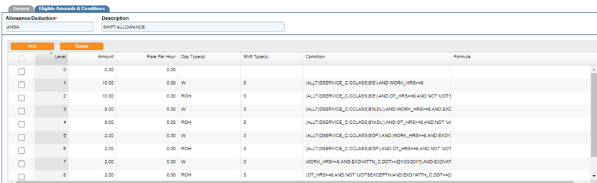 This screen enables you to define various types of daily allowance/deduction and its conditions.