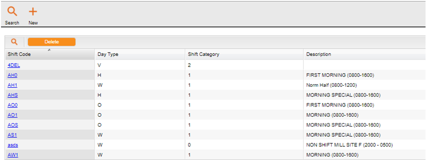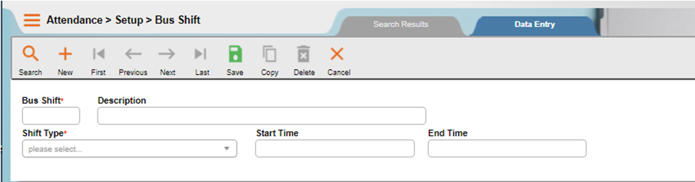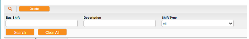 2. Use the List screen to locate the Bus Shift or Description or shift type. Click on the ‘SEARCH’ button.