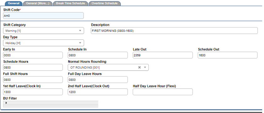 – Those employees who clock in between 1400 to 1600, system will replace the shift code to afternoon shift code