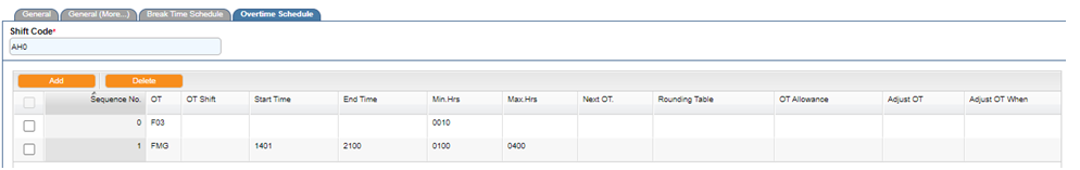 - This is a global OT entitlement control for the specified shift. Specify the minimum hour and minutes for OT entitlement. If OT performed less than the value defined here, then the employee will not get any OT.