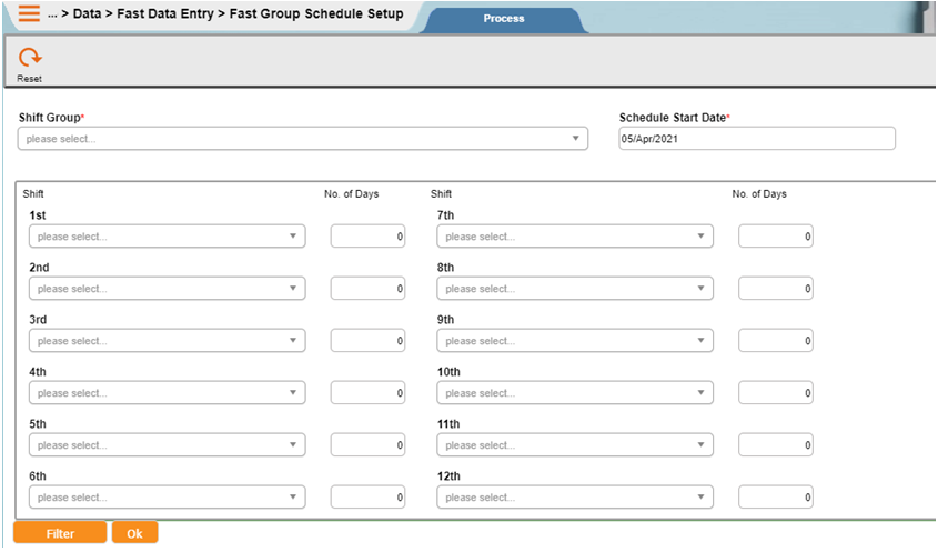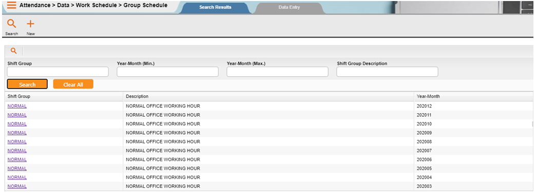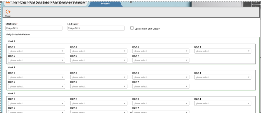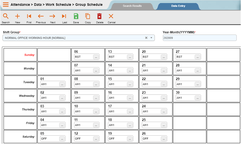 - Click on the dropdown button to select the new shift group code (if there is a change on shift group).