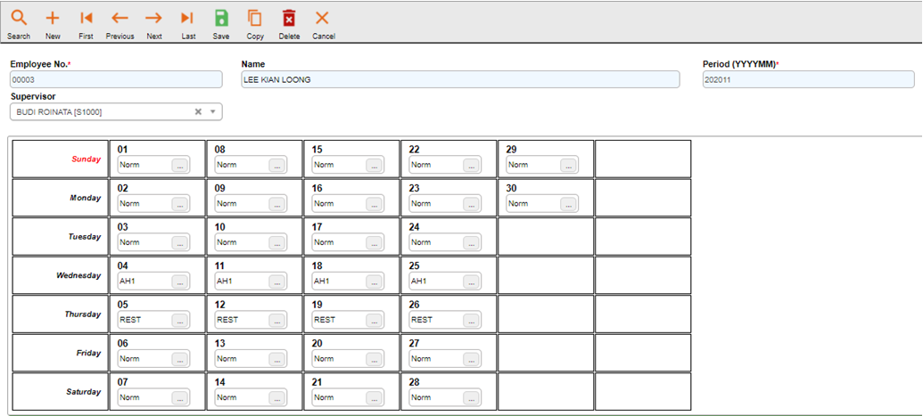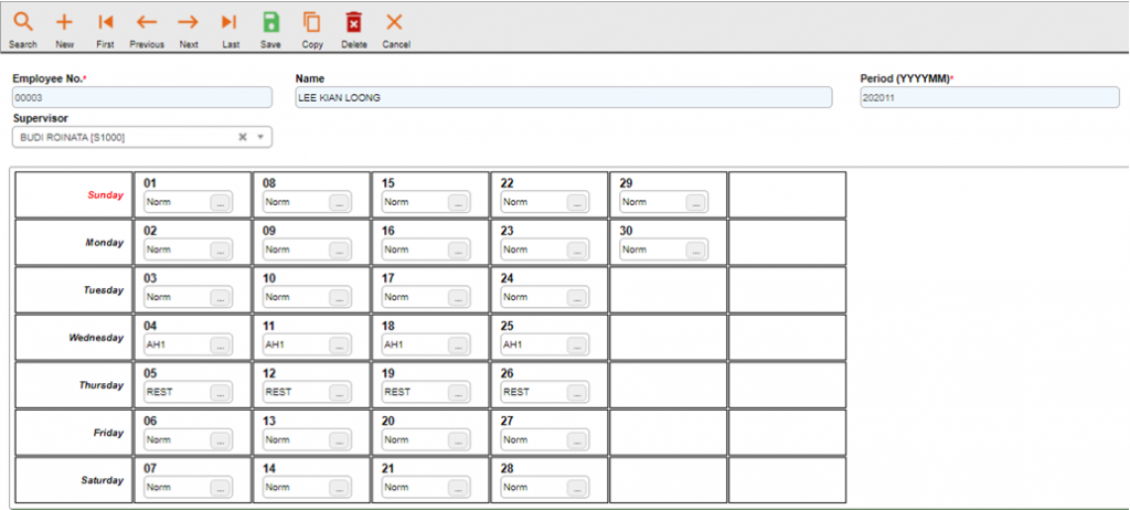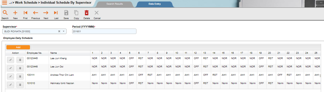 Employee Schedule is the individual working schedule for a particular employee. User needs to setup the individual schedule if the particular employee has different working schedule from the group schedule.
