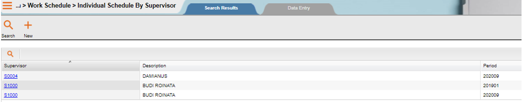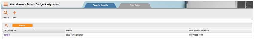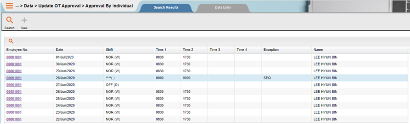 If the entry is not valid, system will indicate a message informing user that there is no record match. Just Click on the ‘SEARCH’ button on the Find dialog and the List screen is displayed. Click to select the Employee No. and date.