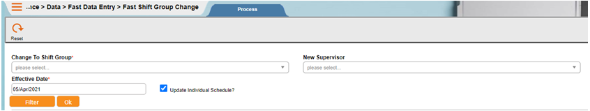 User needs to run this option when there is a group of employees involved in the changing of Shift Group or Supervisor.