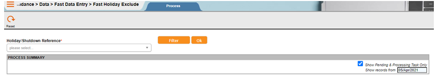 2. The Fast Holiday Exclude screen will be shown as the following: